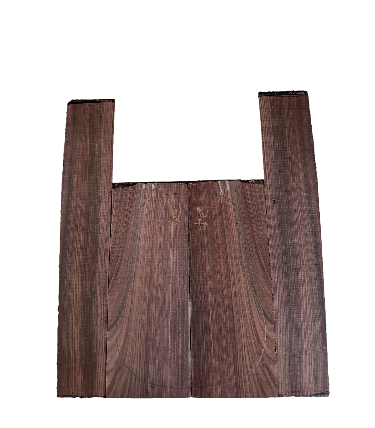 This beautiful set of Indian rosewood back and sides, known by its Latin name Dalbergia latifolia, is the perfect choice for any guitar maker seeking superior quality and a rich, warm tone. The dense and durable Indian rosewood is known for its deep bass response and clear overtones, giving your instrument unparalleled tonal quality. With this set, you can create a top-quality guitar that will impress both visually and acoustically. Choose the finest materials for your instrument and choose this beautiful Indian rosewood set.