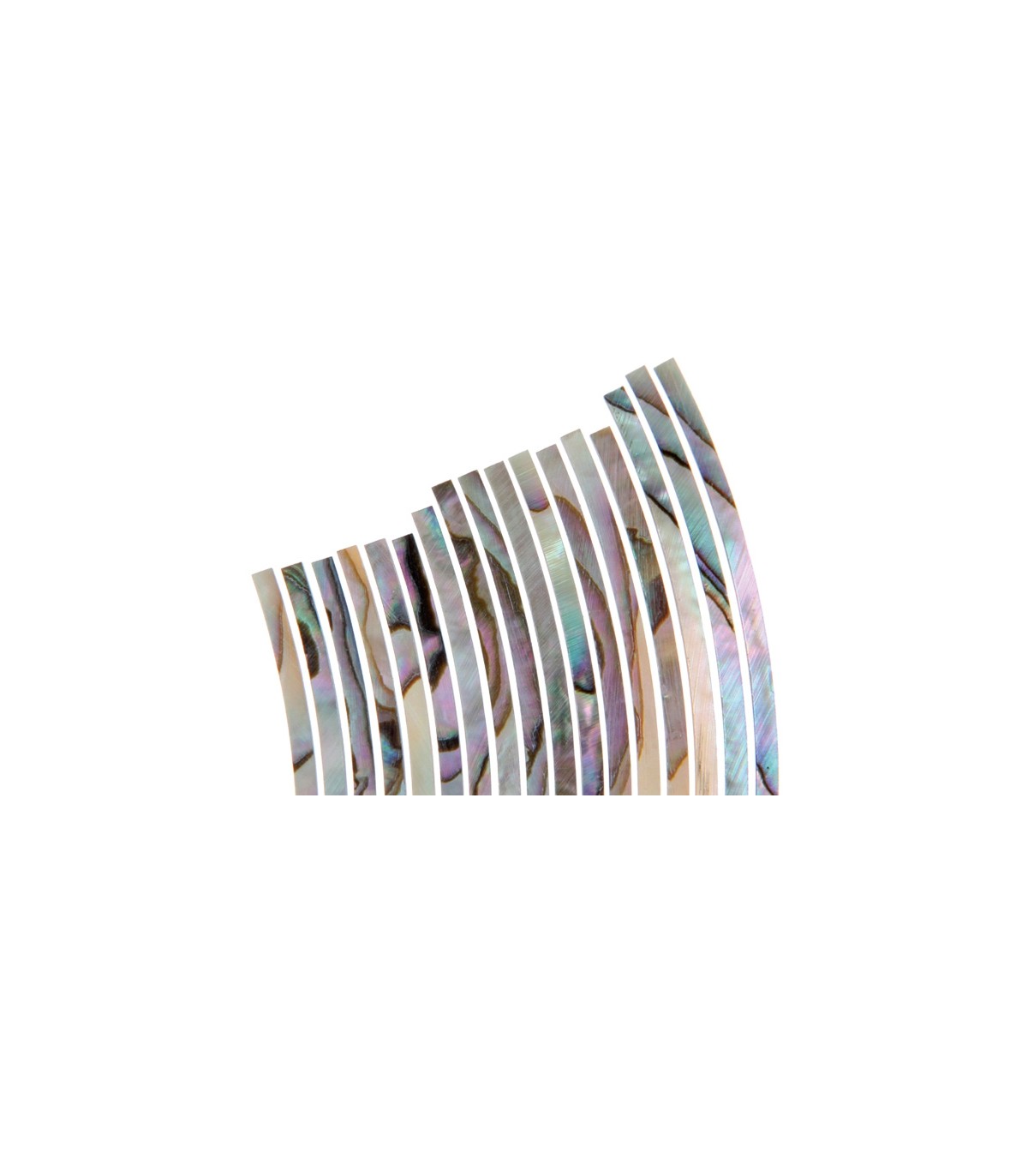 Bandes d'ormeau incurvées, d'environ 4 cm de long et 3,2 mm de large, avec un diamètre intérieur de 125 mm.