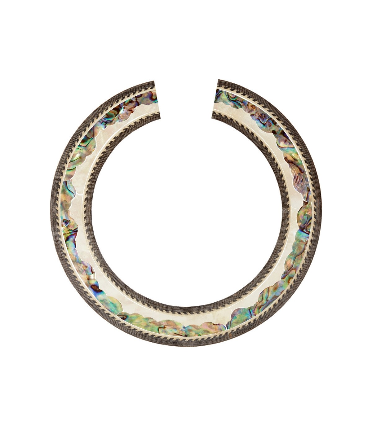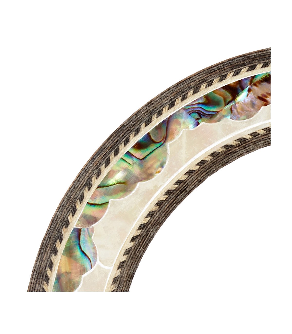 Rosette Q en bois et nacre.