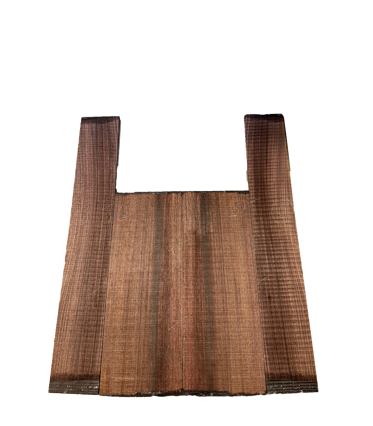 Ce magnifique ensemble de fond et d'éclisses en palissandre indien (Dalbergia latifolia) est le choix idéal pour tout luthier en quête d'une qualité supérieure et d'une sonorité riche et chaleureuse. Dense et durable, le palissandre indien est réputé pour ses basses profondes et ses harmoniques claires, conférant à votre instrument une qualité sonore incomparable. Avec cet ensemble, vous pouvez créer une guitare haut de gamme qui impressionnera tant par son esthétique que par ses performances acoustiques. Optez pour les meilleurs matériaux pour votre instrument et choisissez ce superbe ensemble en palissandre indien.