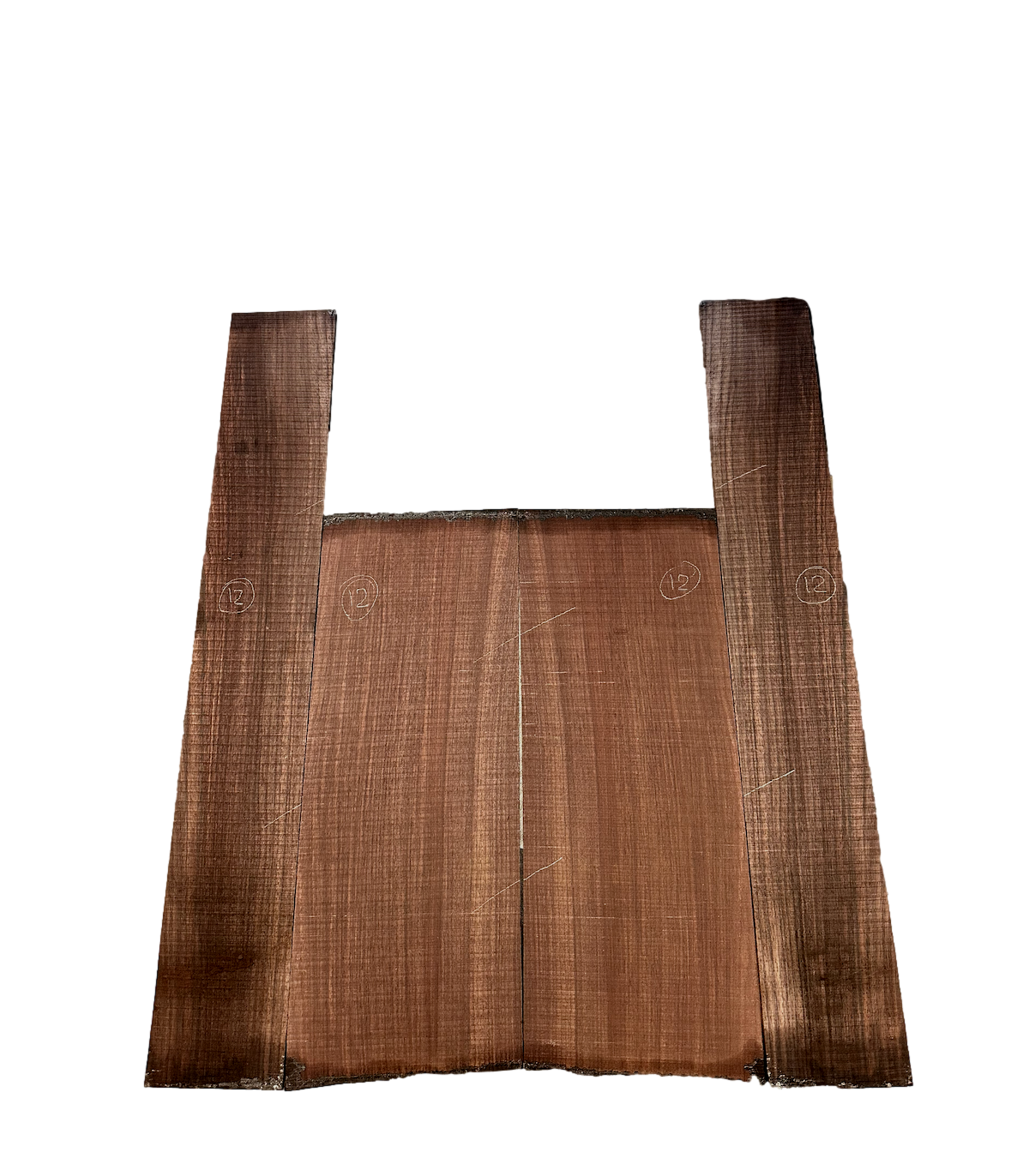 Ce magnifique ensemble de fond et d'éclisses en palissandre indien (Dalbergia latifolia) est le choix idéal pour tout luthier en quête d'une qualité supérieure et d'une sonorité riche et chaleureuse. Dense et durable, le palissandre indien est réputé pour ses basses profondes et ses harmoniques claires, conférant à votre instrument une qualité sonore incomparable. Avec cet ensemble, vous pouvez créer une guitare haut de gamme qui impressionnera tant par son esthétique que par ses performances acoustiques. Optez pour les meilleurs matériaux pour votre instrument et choisissez ce superbe ensemble en palissandre indien.