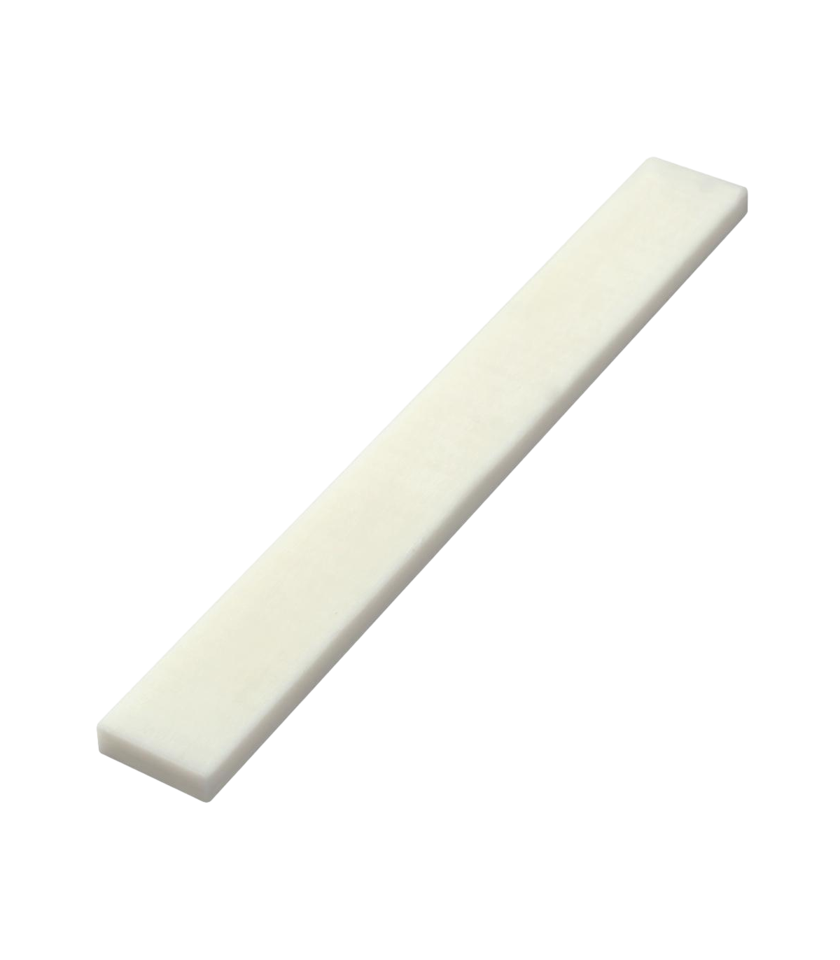 Sillet en os brut pour guitare classique ou acoustique. Autrefois, ces pièces étaient souvent en ivoire, mais l'os constitue aujourd'hui une excellente alternative.